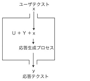 - xに対する Transformer の応答生成は,テクスト U+Y+x から開始する。