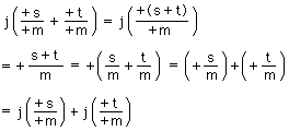 において例えばs+p=tならば,s/m+p/m=t/mであるから,上式はつぎのように続く: