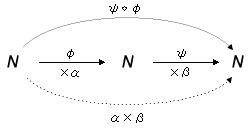 実際,比例関数φ: N─→N,ψ: N ─→N で,それぞれの比例定数がα,βであるとき,ψ